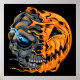 Uma jack assustadora derretendo um crânio assustador com olhos azuis.
