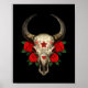 Poster Crânio de Bull com Rosas vermelhas em preto