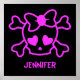 Neste ponto, você vê um crânio feminino rosa-claro muito bonito com arco e grandes olhos em forma de coração. Um presente muito divertido para uma menina ou uma adolescente. Personalize-o com o nome dela para torná-lo especial.
