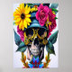 Poster Crânio sorridente, óculos de ouro, chapéu de flor