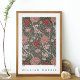 Um poster de arte moderna com o padrão Cray (1884), do designer têxtil britânico William Morris (1834-1896). Um padrão floral de flores vermelhas e cor-de-rosa contra um sofisticado fundo de cinzas escuras.