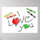 Simples desenho colorido de giz infantil da expressão EU TE AMO com giz de criança espalhado ao redor da mensagem. Imagem disponível em vários presentes e produtos. Personalize e escolha a sua própria cor de fundo ou adicione texto, se necessário.