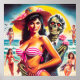 Poster Creepy Zombie Beach Pin-up