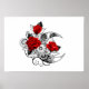 Contorno, lua da crista mecânica com engrenagens, decorada com rosas vermelhas com caules e folhas pretas em fundo branco. Steampunk