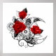 Contorno, lua da crista mecânica com engrenagens, decorada com rosas vermelhas com caules e folhas pretas em fundo branco. Steampunk