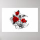 Contorno, lua da crista mecânica com engrenagens, decorada com rosas vermelhas com caules e folhas pretas em fundo branco. Steampunk