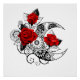 Contorno, lua da crista mecânica com engrenagens, decorada com rosas vermelhas com caules e folhas pretas em fundo branco. Steampunk