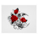 Contorno, lua da crista mecânica com engrenagens, decorada com rosas vermelhas com caules e folhas pretas em fundo branco. Steampunk