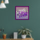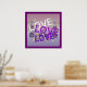 Folhas e flores em cinzas, verdes e violetas são tecidas com a palavra "Amor" nas mesmas cores para criar uma maneira adorável de espalhar a mensagem de que o amor não pode crescer sem nossa ajuda.
