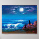 Pôster Criações de Arte Negra para Gatos no Oceano Lua