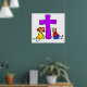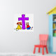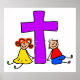 Um desenho animado bonito de uma garotinha sentada ao lado de uma cruz gigante. Imagem disponível em vários presentes e produtos. Sofram as crianças pequenas para vir até mim, e proíbam-nas de não o fazer: por isso é o reino de Deus - Mark 10v14