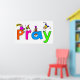 Uma bela ilustração branca de um grupo de crianças pequenas escalando sobre a palavra PRAY. Imagem disponível em vários presentes e produtos.