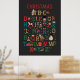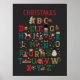 O poster do alfabeto do Natal bonito apresenta skates de gelo, preguiçoso, mitenes, renas, presentes, bonecos de neve, trem, suéter, coroa, flocos de neve de lodos de íbulo, elfo, gengibre, e luzes de Natal.