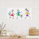 Ótima ilustração de desenho animado de três meninos pequenos jogando futebol. Imagem disponível em vários presentes e produtos.