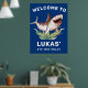 Poster Crianças Engraçado Tubarão Azul Festa de aniversár