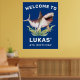 Bem-vindos amigos e família a juntarem-se ao vosso filho com este poster de boas-vindas a uma festa de festa de aniversário de tubarões. Este design apresenta um fundo azul escuro com um tubarão feliz e risonho. Ele está nadando com algas marinhas no oceano. Personalize este item com o nome do seu filho ou filha e o ano do seu aniversário. A fonte e a cor são personalizáveis. Perfeito para a festa de aniversário de um menino. Precisa de ajuda? Apenas entre em contato conosco e ficaríamos felizes em ajudá-lo com sua personalização especial.