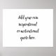 Crie seu próprio Poster de citação inspiracional moderna do DIY. Sinais de Posters de download digitais ou impressos. Adicione sua própria citação inspiradora ou motivacional aqui usando a tipografia moderna. Ou mudar para outra fonte ou tamanho. Adicionar, eliminar ou alterar o número de linhas. Texto preto sobre fundo branco ou alteração à sua escolha. Excelente de encorajamento à malhação moderna ou citações ou versos religiosos ou inspiradores cristãos. Perfeito para dar a equipes ou organizações para que todos recebam a mesma citação personalizada. Entre em contato com Kris Harty na loja para obter ajuda com modificações. Série Inspiração Passo a Passo disponível exclusivamente no Zazzle em zazzle.com/store/KrisHarty, projetada pelo designer internacional Kris Harty. © 2020 Kris Harty Passo a Passo Designs Inspiracionais