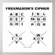 Não é preciso ser criptografador para desfrutar dessa poster com a cifra da Freemason, também conhecida como cifra-pigpen, cifra-masônica ou cifra Rosicruciana. Façam outros tomarem a dobrar essa simples cifra de substituição geométrica que troca letras por símbolos que são fragmentos de uma grade. Os codificadores e todos os que gostam de criptanálise vão desfrutar!