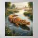Arte poderosa de crocodilo em croissant apresentando um réptil elegante construído a partir de camadas de massa amanteigada, laminações escamosas, texturas douradas assadas e destaques caramelizados. Deslizando por um pântano de rio iluminado pelo sol com água reflexiva, juncos, margens de pedra, árvores salgueiro, névoa flutuante, pássaros em voo e moinhos de vento distantes, este design de fantasia luxuoso combina elegância com força primitiva. Perfeito para cozinhas, padarias, cafés, salas de jantar, interiores modernos ou colecionadores de decoração gourmet de animais.