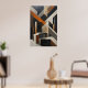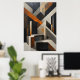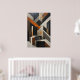 Geometric abstract art with shapes resembling stairs and architectural blocks. Tones of black, white and rusty orange. Sophisticated painted texture. Ideal for modern decoration and offices. Structural design playing with perspective and depth in an elegant and contemporary composition.