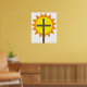 Uma cruz contra um sol amarelo brilhante. Esta design parece realmente eficaz nesta Poster