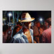 Pintura de um belo jovem cubano em uma camisa de seda não abotoada e palha do Panamá que vagava entre amigos em uma multidão de festas noturnas ocupadas em um hotel de luxo de Miami Beach. Este é outro design de 100% original de Hamster de Combate.