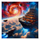 Um poster brilhante do trabalho de arte de "Crusing the Cosmic Clouds" do Planetário Prankster.