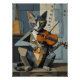 Experience the avant-garde brilliance of Cubist Harmony , a fragmented still life reimagining a cat playing a violin. Rendered in muted blues, ochres, and grays, angular shapes deconstruct the feline form, while the violin splinters into geometric planes. Overlapping lines and distorted perspectives create dynamic tension, channeling Picasso’s revolutionary spirit. The sparse background keeps focus on the abstract composition, making it a striking conversation starter.
