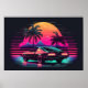 "Synthwave Summit: Racing to the Sunset" é uma arte visualmente deslumbrante que captura o entusiasmo e a energia de uma corrida de alta velocidade através de uma cordilheira. O trabalho de arte retrata um carro futurista elegante à medida que acelera em direção ao horizonte, suas curvas e cromo brilhando na luz quente do sol. O carro é rodeado por uma incrível paisagem montanhosa, com picos irregulares e colinas rolantes esticando-se até a distância. As cores do pôr do sol se refletem no carro e na paisagem, criando uma atmosfera surreal e de outro mundo. Este trabalho de arte é a combinação perfeita de estética de ondas de síntese, ficção científica futurista, e beleza natural impressionante, fazer que é imperativo ver para qualquer um que ama arte única e engajadora.
