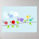 Estas aves salpicantes e coloridas seriam uma adição alegre ao quarto de qualquer criança. Esta impressão tem um segundo impressão de pássaros-encaracolados. Arte original de Night Owl's Menagerie 2010