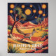 Step into the vibrant world of Joshua Tree National Park with this expressive Van Gogh-style landscape featuring a roadrunner racing through the golden desert sands beneath swirling suns and shimmering skies. Inspired by the bold brushwork and dynamic movement of Vincent van Gogh, the scene captures the lively desert ecosystem: Joshua trees reaching upward, sun-lit rock formations in the background, and the roadrunner embodying life and motion in the arid American Southwest. This design brings together vintage travel poster aesthetics and modern impressionist flair—ideal for anyone who loves national park wildlife, desert-inspired home décor, or boldly colorful art that tells a story. Display it as a postcard, art print, or gift to commemorate southwestern travels or a passion for nature’s wild beauty. All text on this design is editable and can be personalized.