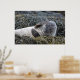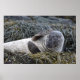 Harbor seal laying on a bed of seaweed scratching an itch.