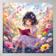 A sweet illustration of a little anime girl reading a book. She is surrounded by lovely nature with pink and purple flowers and musical notes floating above her. If you like anime, reading and music this poster is perfect for you!