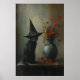 Poster Cute Black Cat Witch With Dark Botanicals, Dark