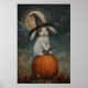 Poster Cute Bunny Witch on Pumpkin Art Printable, Hallowe