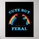 Poster Cute But Feral Raccoon With Rainbow Funny Raccoon