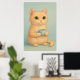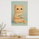 Poster Cute Cat with Coffee Cup – Adorable Pastel Animal
