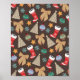 Cute retro christmas – brown holiday pattern featuring bows / ribbons, christmas trees, baubles, snowflakes, christmas stockings and stars.