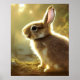A poster for wildlife lovers, featuring AI generated realistic digital painting of a cute baby cottontail rabbit near a mountain stream.