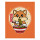 Pôster Cute Fox Eating Ramen Kawaii - Presente de Comida