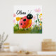 Cute animal-themed design for little girl's nursery walls, this personalized Ladybug Girl’s Name Wildflowers poster features an adorable red ladybug nestled among soft pastel wildflowers. Perfect for little girls who love nature and whimsical ladybugs. Makes the perfect baby shower gift!