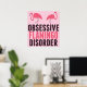 Cute Obsessive Flamingo Disorder Poster. Pretty pink flamingos stand on funny words for a flamingo bird lover.