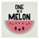 Poster caiana, bonitinho, com uma fatia adorável de melancia com olhos sujos e um sorriso doce. Acima da fatia de melão estão as palavras Um em um melão em letra negra.