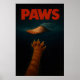 Bring a smile to every cat lover’s face with this hilarious PAWS parody poster, inspired by the iconic Jaws movie design. Featuring an orange tabby cat paw dramatically reaching upward toward a human foot peeking out from under a blanket, this artwork blends humor, suspense, and feline chaos into one unforgettable piece.