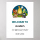 Welcome your guests in style with this Cute Wild Animals Jungle Camping Birthday Welcome Poster! Featuring adorable tiger, snake, koala, and monkey illustrations, along with a playful night fire theme, this poster is perfect for setting the tone at any jungle or camping-themed birthday party.