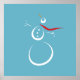 Simples desenho branco de um bonitinho bonitinho bonitão com cachecol vermelho, nariz de cenoura, e braços de pau alegremente abertos para abraçar a estação de inverno. Edite para alterar o fundo ciano azul-esverdeado para qualquer cor desejada. ♡ Idyllfire