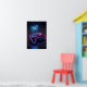Transform your gaming room with this cyberpunk gaming controller poster featuring neon lights and futuristic vibes. This close-up illustration showcases a gaming controller outlined in neon pink, blue, and purple, resting on a reflective black surface with faint glowing circuit lines. A small holographic sign above the controller projects the phrase “GAMING ZONE” in neon blue, set against a dark gradient background with minimal pixel glitch effects for added atmosphere. With its high-contrast, clean composition, this artwork is perfect for cyberpunk enthusiasts, gamers, and collectors seeking a striking, futuristic decor statement for their gaming setups.