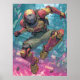 Feel the rush with this explosive cyberpunk illustration: a powerful red-and-gold mecha exosuit pilot launches through a chaotic neon-lit metropolis, surrounded by glowing skyscrapers, holographic chaos, and electric pink-teal energy. Detailed armor, dynamic motion, and vibrant comic-book style make this a perfect statement piece for gamers, anime fans, sci-fi enthusiasts, or modern teen/young adult rooms. High-resolution digital print.