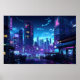 Ciência futurística da cidade ciberpunk de Tóquio Japão com luz neon colorida e céu noturno, a vista noturna do telhado.