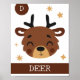 D é para Veado. Esta impressão de arte simples e fofa faz parte de uma coleção. Combine este design com outros pôsteres da coleção para uma galeria de arte para o quarto da sua criança.